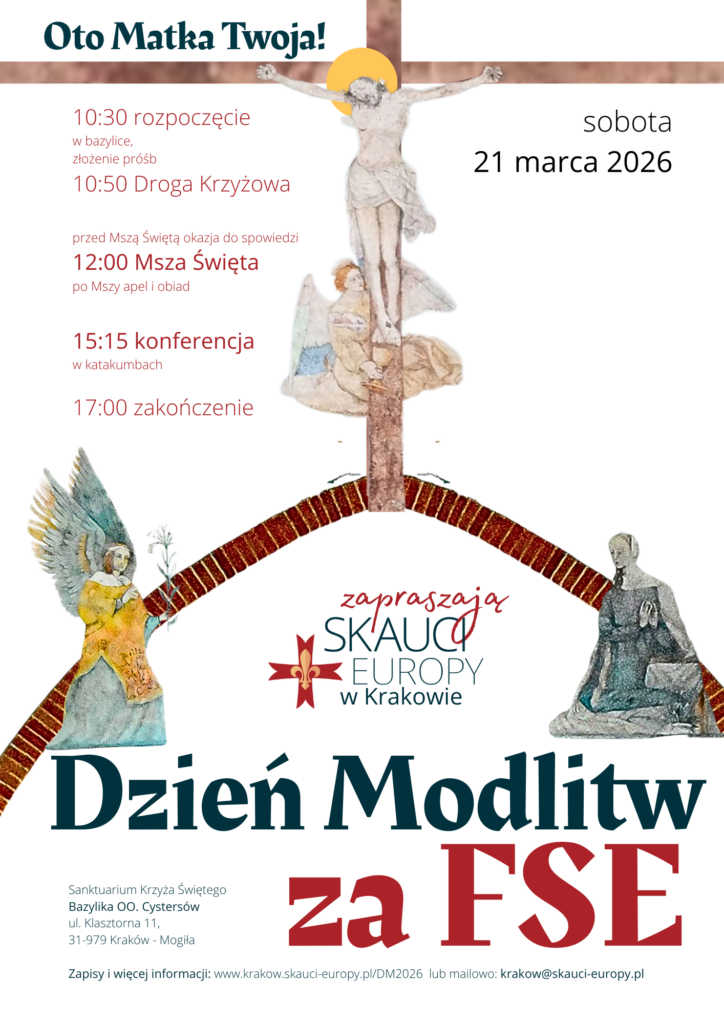 Dzień Modlitw za Federację Skautingu Europejskiego to rodzinne spotkanie całego środowiska Skautów Europy – wilczków, harcerzy, wędrowników, przewodników, rodziców i przyjaciół ruchu – które pozwala nam zatrzymać się w codziennej służbie i wspólnie stanąć przed Bogiem. Każdego roku gromadzimy się w jednym z sanktuariów naszej archidiecezji, aby powierzyć Maryi naszą pracę wychowawczą, odnowić świadomość, że fundamentem skautingu jest relacja z Chrystusem, oraz umocnić więzi we wspólnocie. To czas wspólnej Eucharystii, modlitwy i spotkania, który pokazuje, jak wielu zgromadził nas Bóg w krakowskiej rodzinie skautowej.